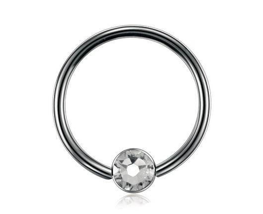 Titanium circular barbell with white zircons - silver - TKP-003