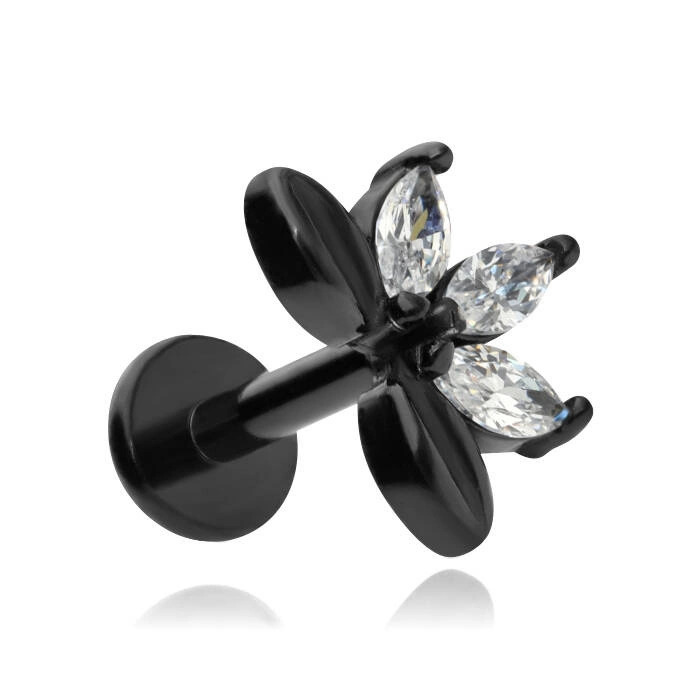 Labret flower with white zircons - black - LGW-051